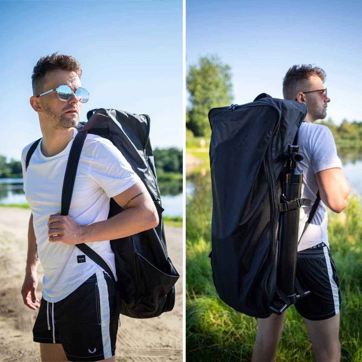 Deze SUP van BluMill is helemaal compleet om direct het water op te gaan; je ontvangt in het pakket een draagtas, verstelbare aluminium peddel (instelbaar van 1,78 tot 2,2m), een handpomp en een enkelkoord van 2,3m lang. Mocht het supboard onverhoopt beschadigd raken, dan zijn kleine reparaties eenvoudig zelf uit te voeren met de meegeleverde reparatiekit.