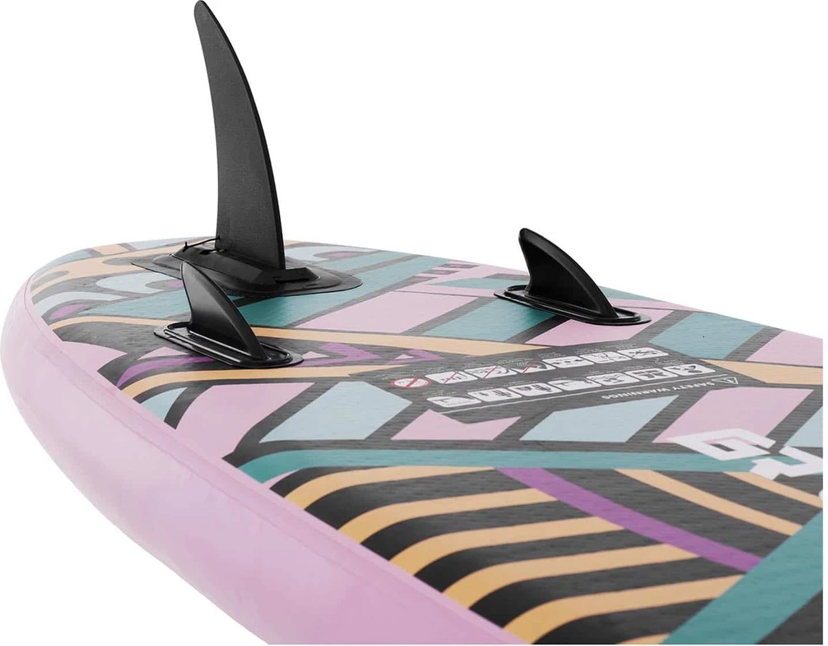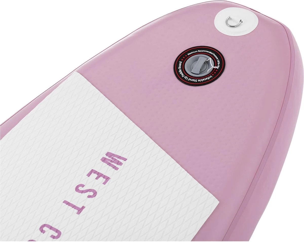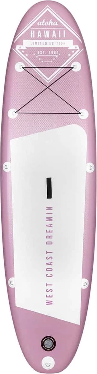 Bestaande uit robuust plastic, de SUP paddleboard is zeer stabiel wanneer opgeblazen en extreem gemakkelijk en handig te vervoeren zonder lucht erin. Dankzij een maximale belasting van 110 kg is hij geschikt voor een breed scala aan toepassingen. De SUP kan staand gebruikt worden, maar het is ook mogelijk om een zitje of een zeil te monteren. De plastic is geschikt voor zowel zout als zoet water, zodat de Paddleboard op elk waterlichaam kan worden gebruikt.Dankzij een antislipmat biedt de SUP extreme veiligheid dankzij een stevige basis.Ook met natte voeten blijf je zonder problemen op het bord staan. De SUP paddleboard is ontworpen in een moderne surfer-look.In slechts 340 seconden is de SUP paddleboard opgeblazen en volledig operationeel. De luchtdruk in de SUP-bord is ongeveer bar.