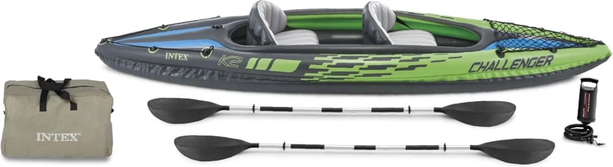 De Intex Challenger K2 Kayak is zeer geschikt om met 2 personen op een meertje of rustig water te peddelen. De Intex Challenger K2 Kayak is voorzien van 3 aparte luchtkamers; één in de vloer en twee in de romp. Als één van de luchtkamers lek raakt, kan de kayak met twee volle luchtkamers veilig de kust bereiken.