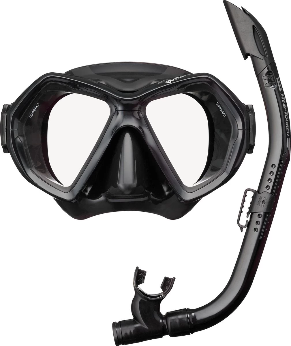ReefTourer Snorkelmasker Duikbril Snorkelset RC-0107- Zwart/zwart
