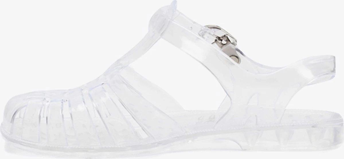 Transparante waterschoen voor dames en kinderen. De waterschoenen hebben een verstelbare gespsluiting.
