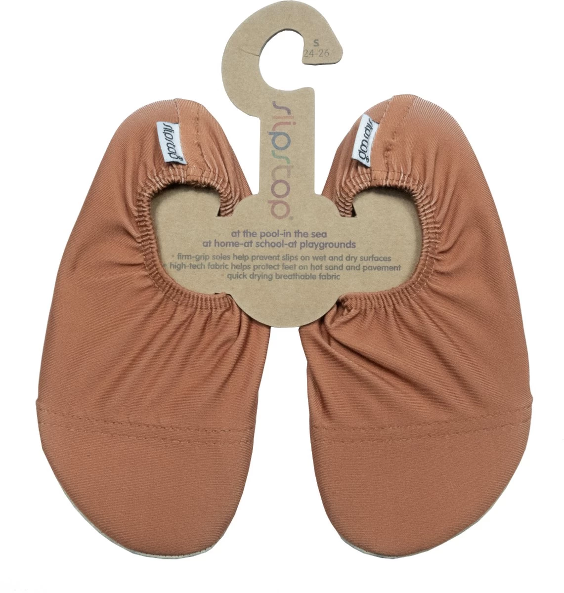 Slipstop cognac zwemschoentjes zijn praktisch voor baby en kind met multifunctionele gebruiksmomenten. Je kan de Slipstops gebruiken op zowel natte als droge ondergronden. Zowel binnen als buiten zijn de Slipstop shoes een goede keuze. Je kleintje heeft grip tijdens het rennen en spelen en door de zool is het voetje beschermd tegen prikken en hete tegels, zand en kunstgras.