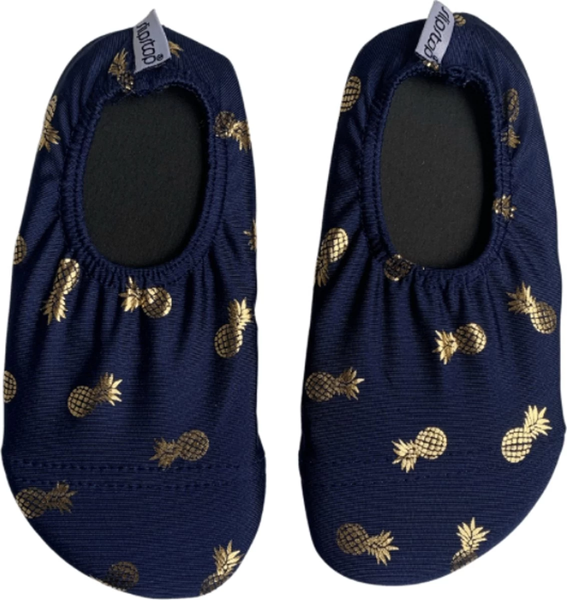 Slipstop Pine – Donker blauwe waterschoenen met goude ananasjes Deze donker blauwe waterschoenen voor meisjes met goude ananasjes zijn dé favoriet onder de meisjes Slipstopshoes. Slipstop Pine is neutraal donker blauw en toch bijzonder door de goude ananasjes. Daardoor kunnen deze waterschoenen voor meisjes onder elk outfit.