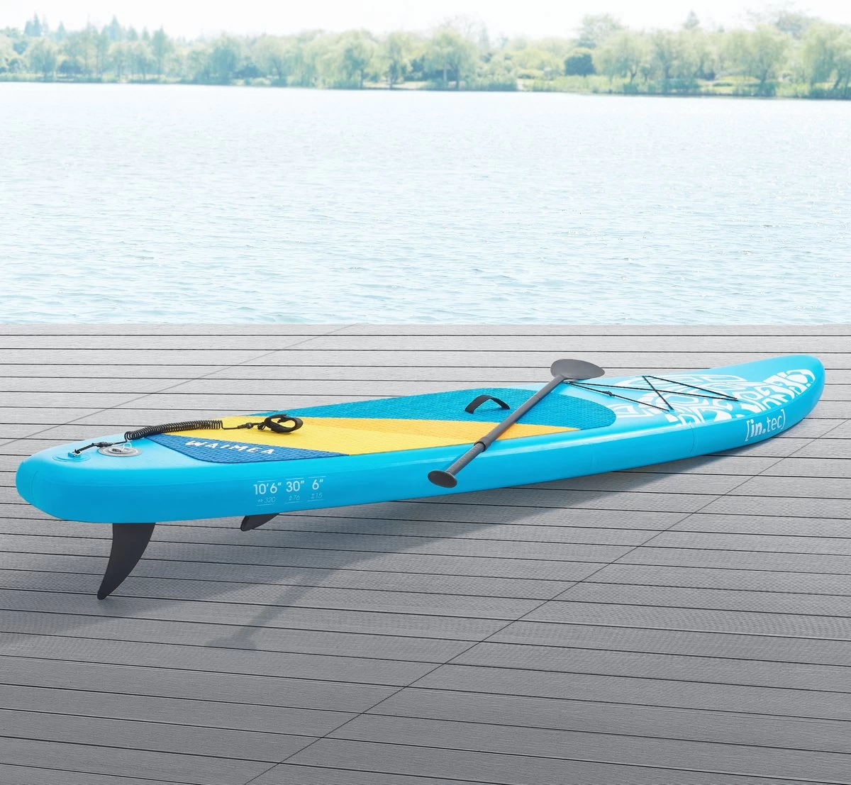 Stand Up Paddle Boarden is niet alleen leuk, maar ook een effectieve workout. U kunt nu meedoen aan deze nieuwe trend met dit opblaasbare Stand Up Paddle Board met accessoires. De platte SUP is dikker en heeft meer volume, zodat u zeker bent van een droge en stabiele rit.